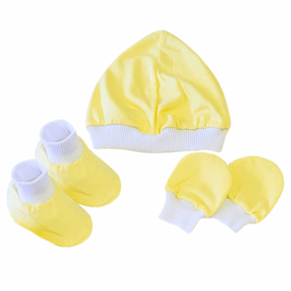 Kit Gorro Luva Sapatinho Prematuro Algodão Amarelo