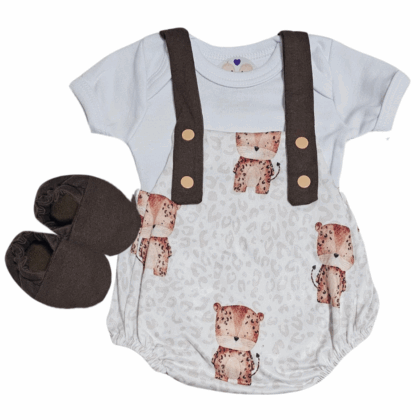 Jardineira Romper Prematuro Luxo Urso Aviador