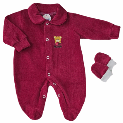Kit Macacão Prematuro Plush Com Luva Marsala