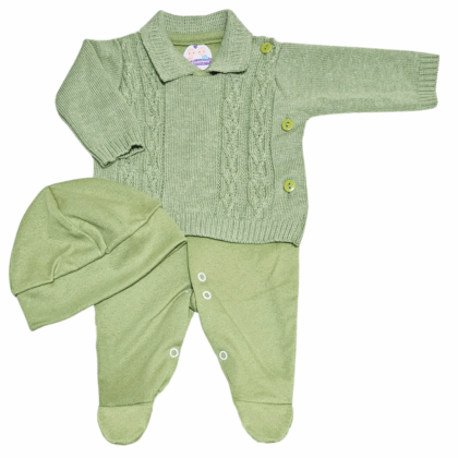 Conjunto Casaco, Body e Calça Prematuro Suedine Verde