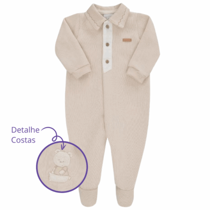 Macacão Prematuro Tricotil Bordado Encorpado Bege