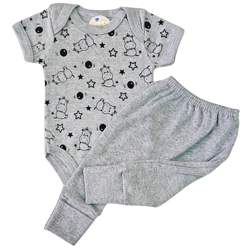 Body e Calça Prematuro Suedine Mescla Fofo