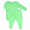 O body, disponível em manga longa, tem passe fácil pelo corpo e fechamento com botões entre as perninhas.