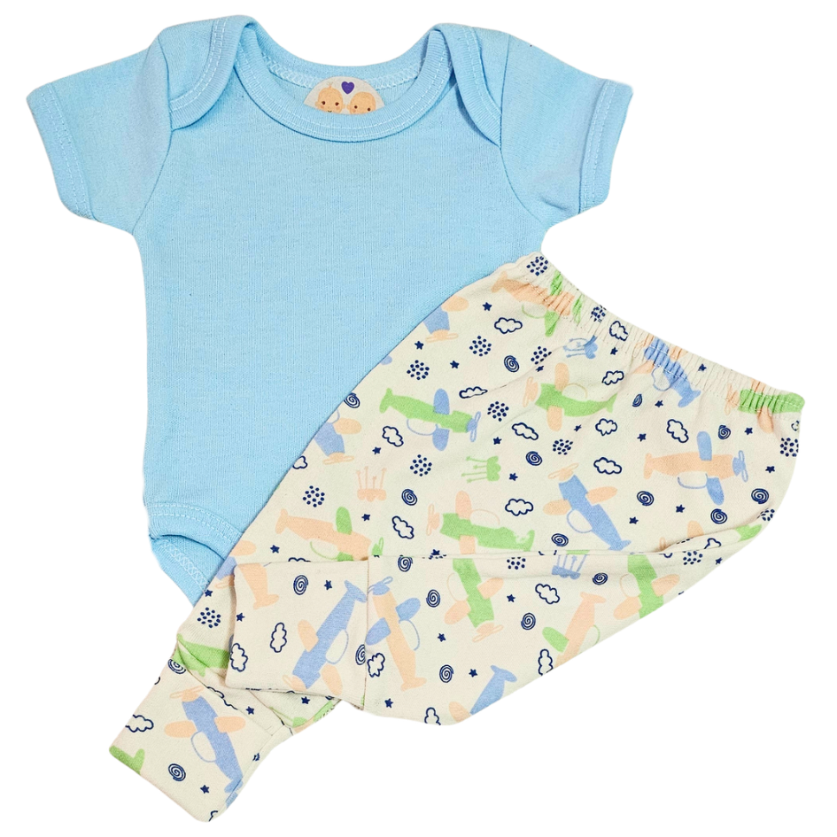 Body e Calça Prematuro Suedine Avião