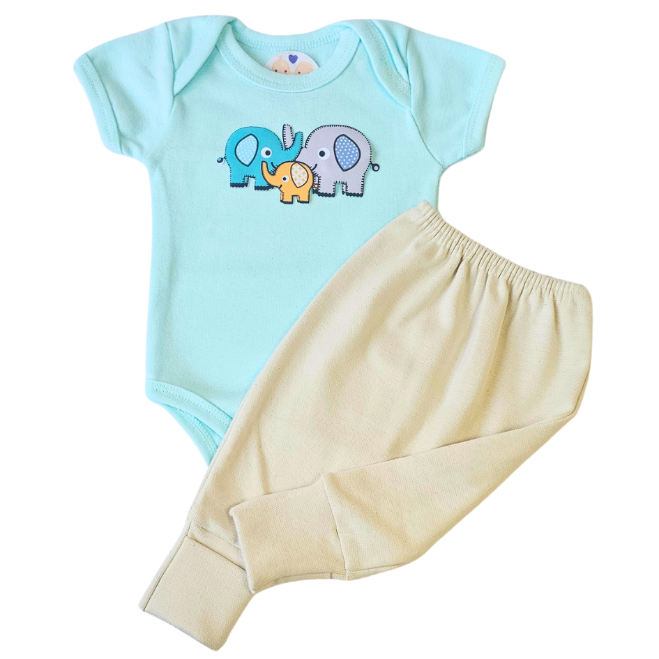 Body e Calça Prematuro Suedine Verão Elefantinhos