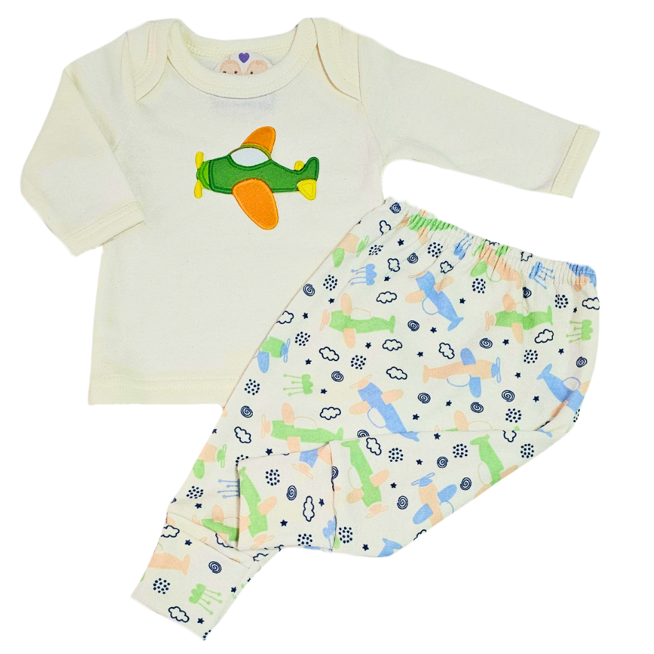 Camiseta e Calça Prematuro Suedine Aviãozinho