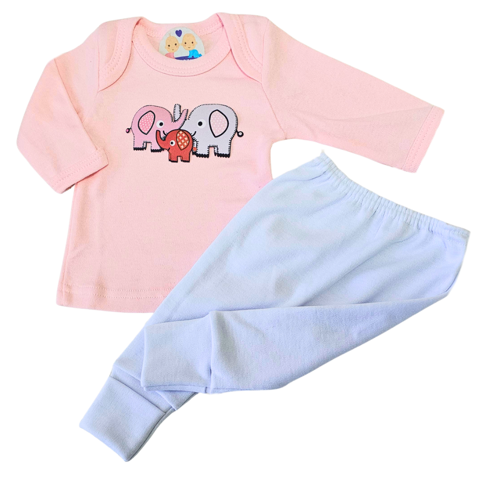 Camiseta e Calça Prematuro Suedine Elefantes Fofos