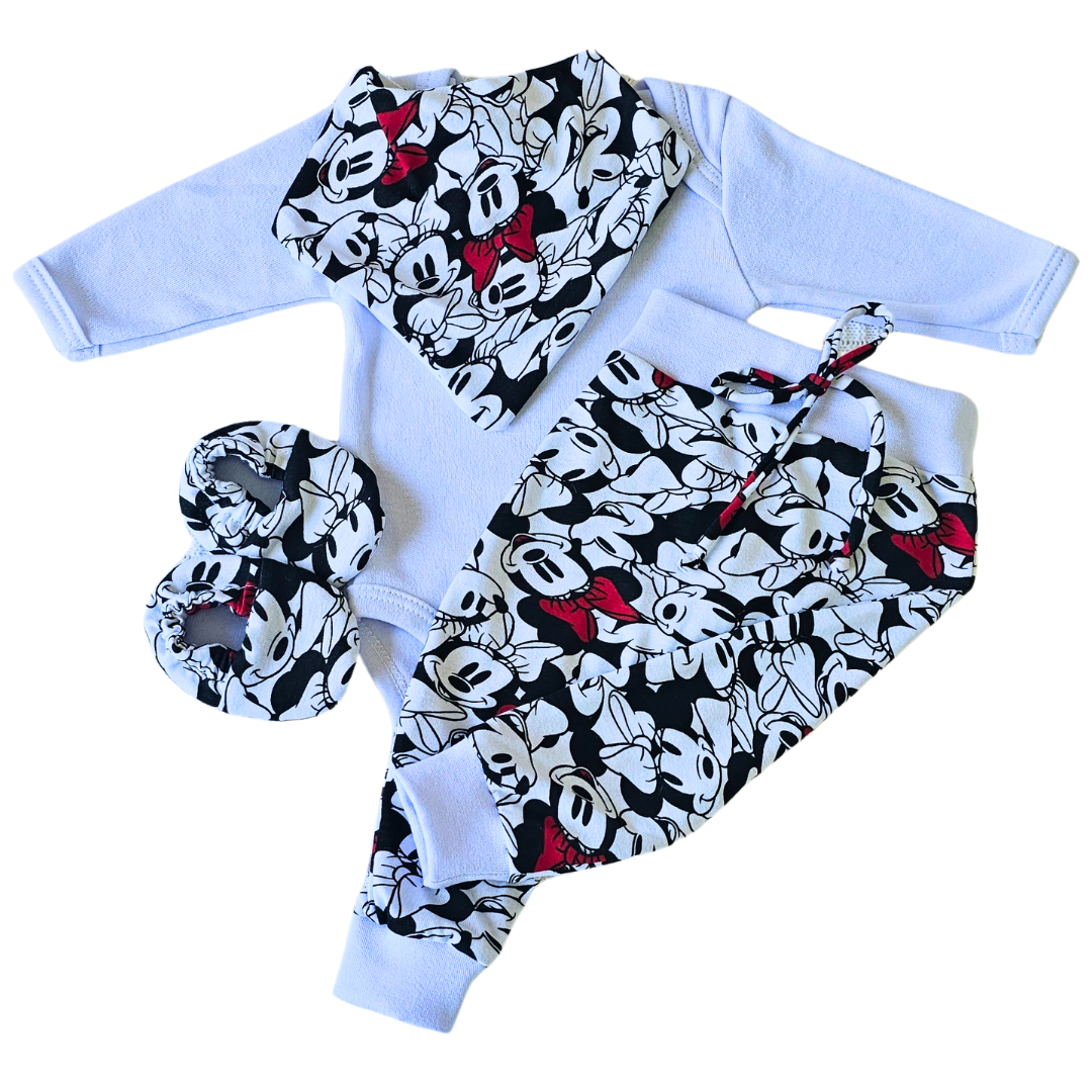 Perfeito para todas as nossas estações, nosso kit em algodão macio, é composto por saruel, sapatinho, bandana e body em suedine 100% algodão.