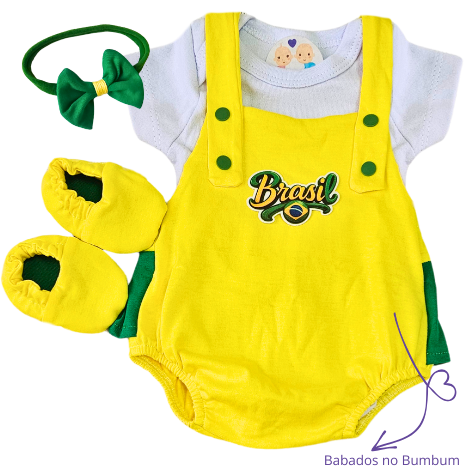 Jardineira Romper Prematuro Brasil Apressadinha