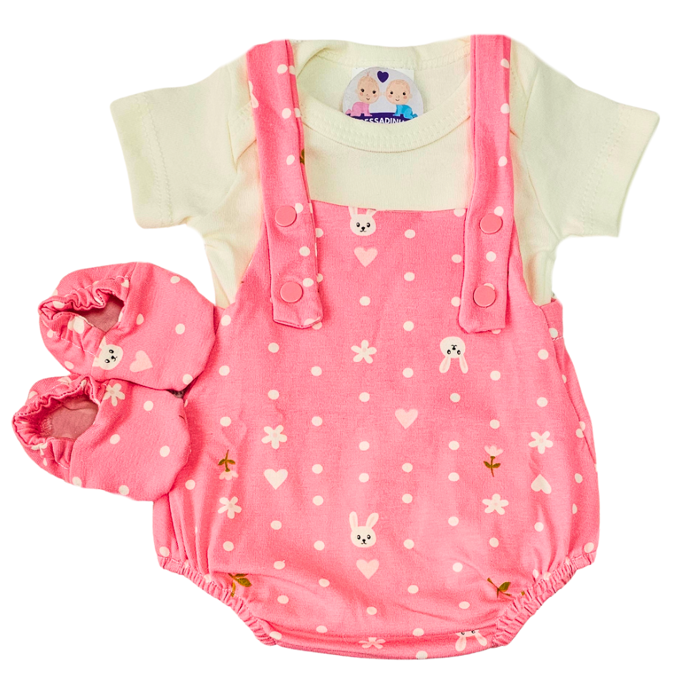 Jardineira Romper Prematuro Coelhinha Feliz