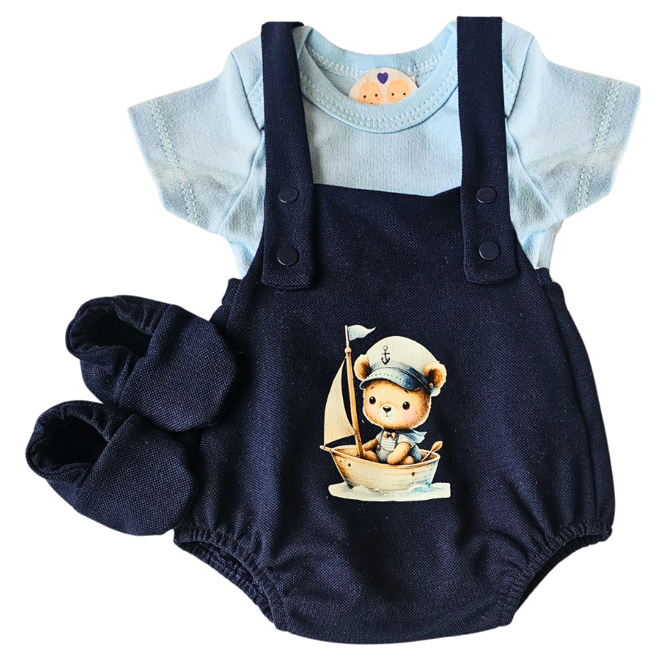 Jardineira Romper Prematuro Luxo Urso Marinheiro