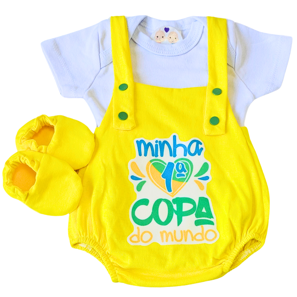 Com uma modelagem moderna, em suedine 100% algodão, a peça vem coordenada com sapatinhos e body também em suedine.
