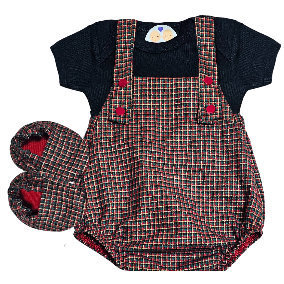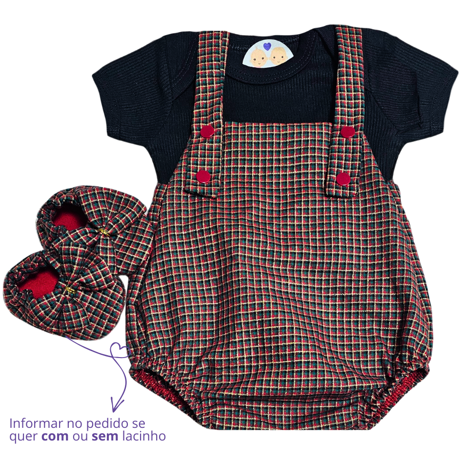 Com modelagem moderna e acabamento impecável, a peça é confeccionada em tricoline nobre, e vem acompanhada de sapatinhos e body em suedine 100% algodão, garantindo um toque macio e agradável à pele sensível dos pequenos.