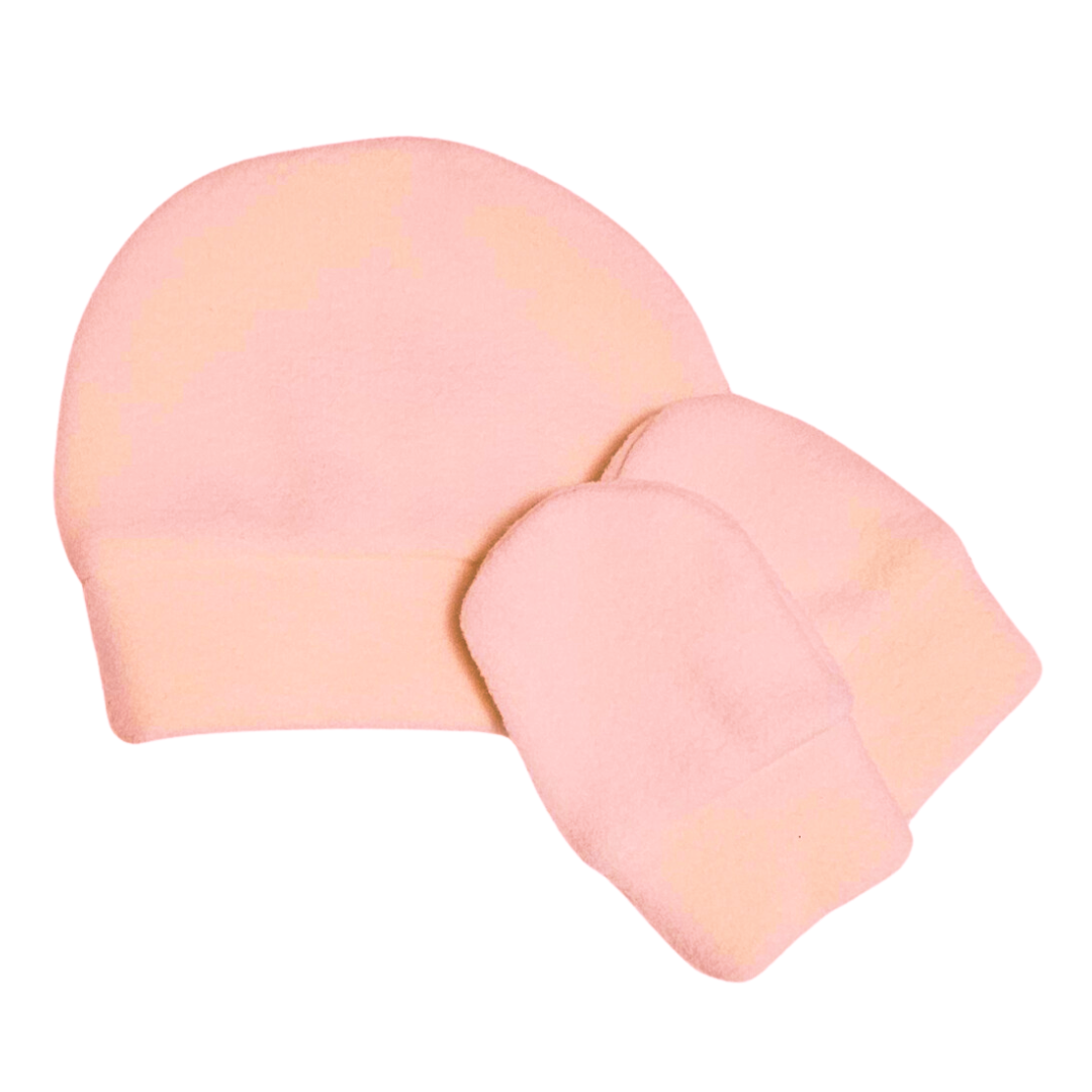 Kit Gorro e Luva Prematuro Algodão Rosa