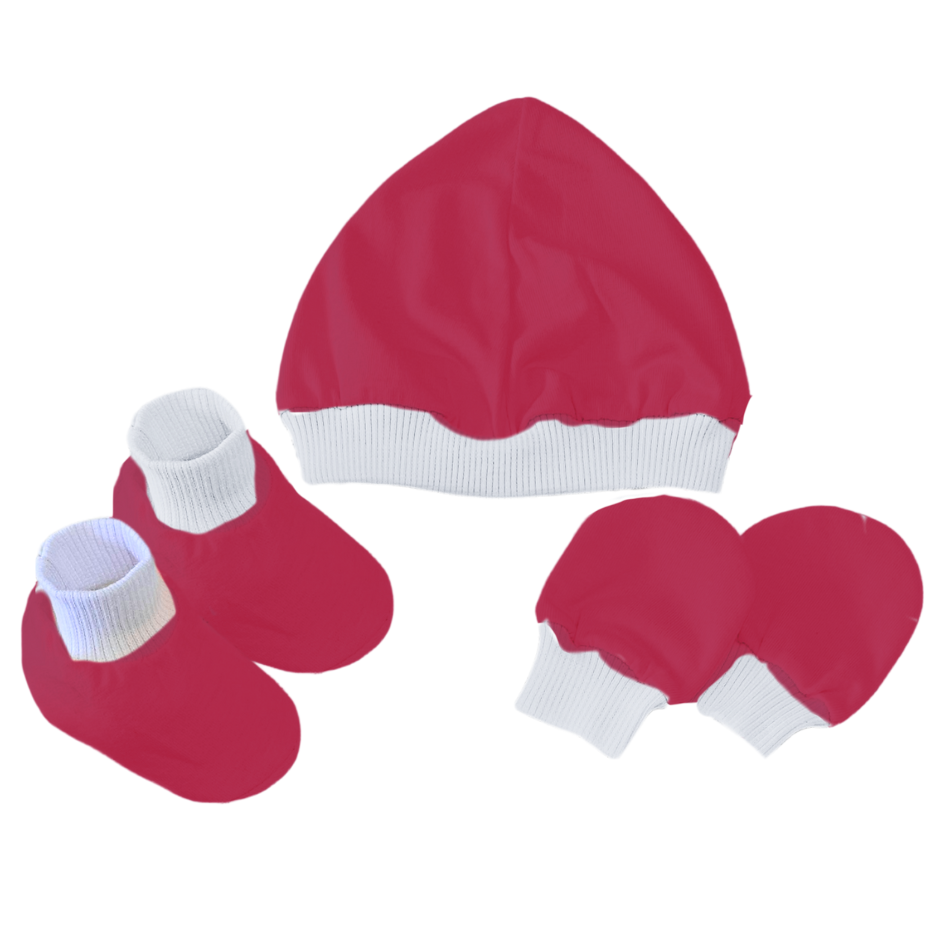Kit Gorro Luva Sapatinho Prematuro Algodão Vermelho