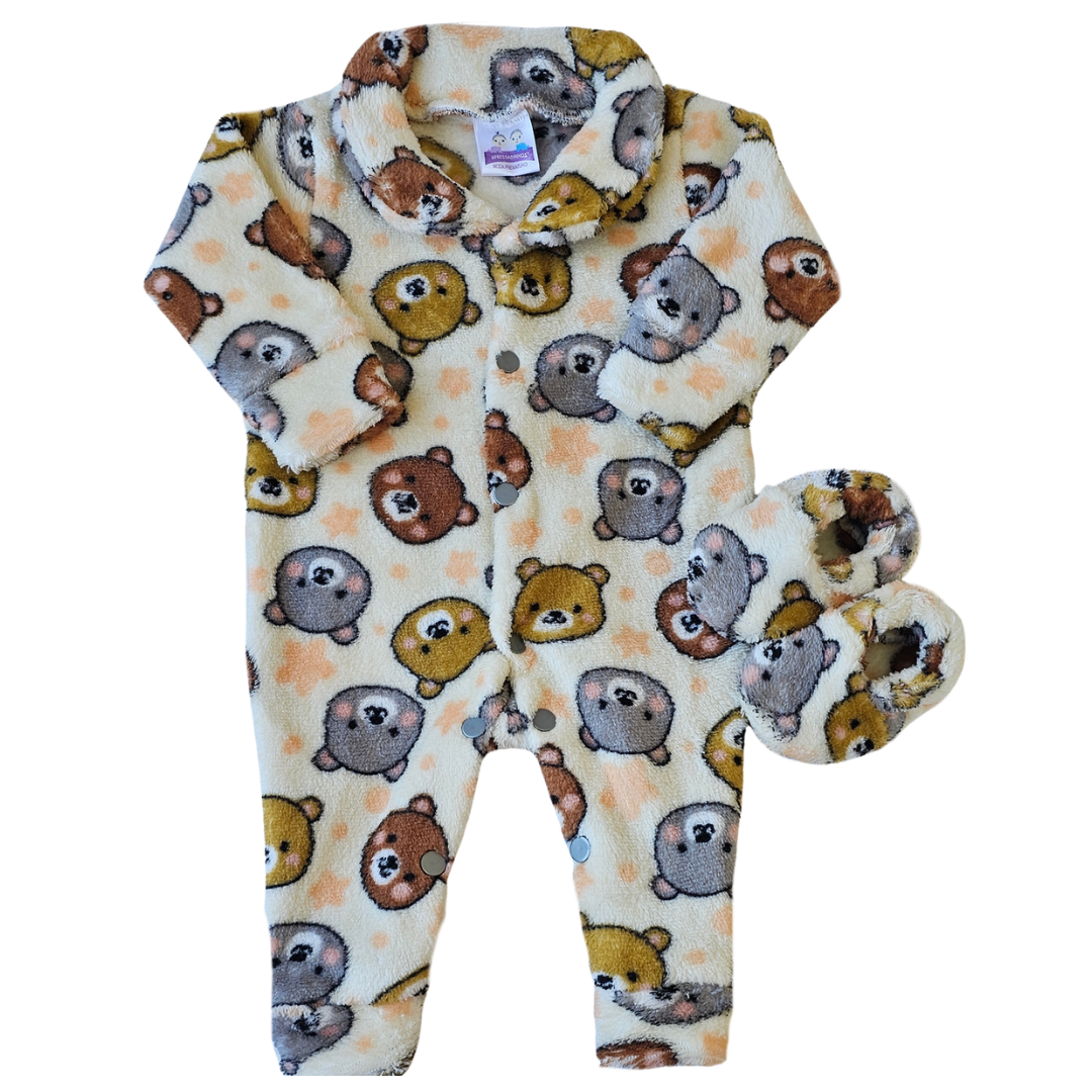 Kit Macacão Prematuro Fleece Ursinhos Alegres