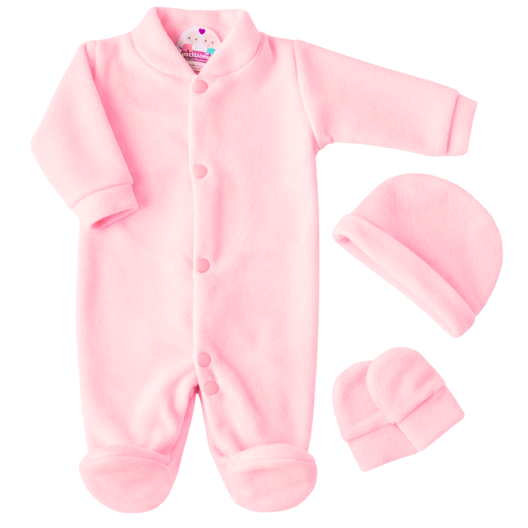 O kit vem com macacão, gorro e luvas, todo em tecido microsoft antialérgico (Pettenati), simplesmente perfeito para os dias mais geladinhos do nosso inverno.