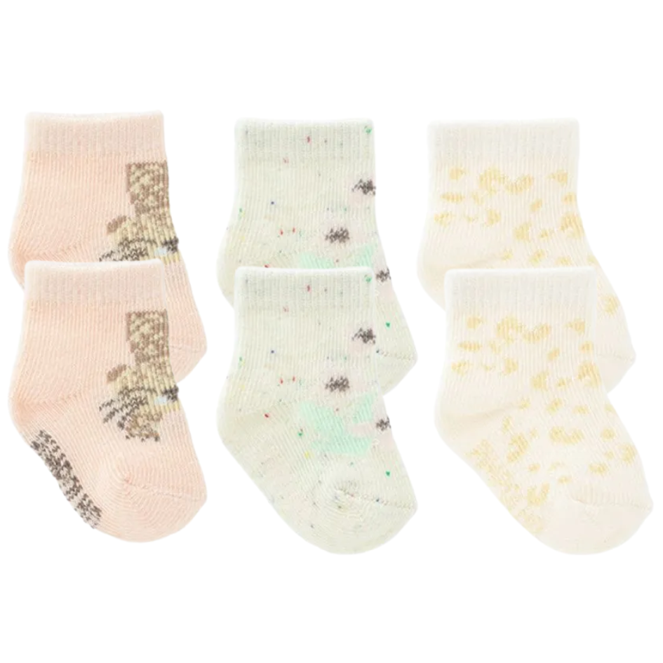 Kit com 3 pares de meias coloridas, com estampas e temáticas divertidas.