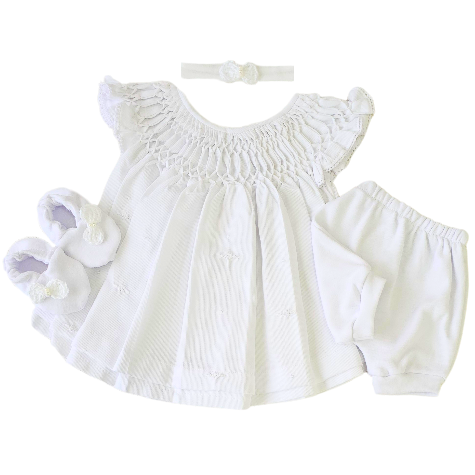 Kit Vestido Prematuro Casinha de Abelha Branco