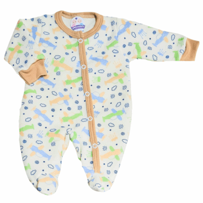 Os botões de pressão na frente e entre as perninhas do macacão, facilitam na hora de vestir e na hora da troca de fralda.