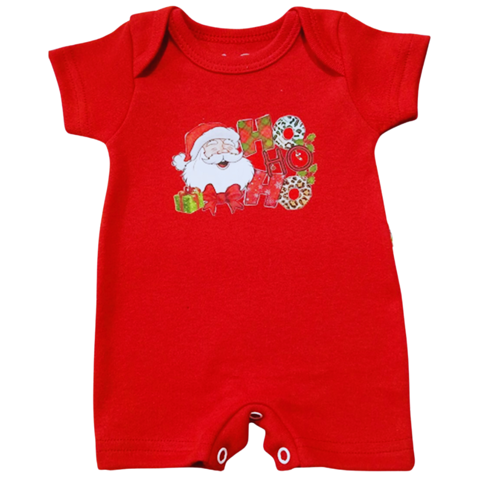 Nosso lindo macacão curto natalino, confeccionado em suedine 100% algodão, é perfeito para o nosso clima tropical.
