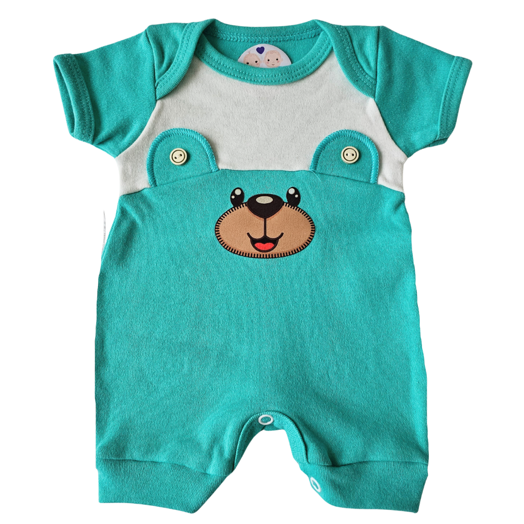 Nosso macacão curto, cheio de estilo com carinha de urso, confeccionado em suedine 100% algodão, com fechamento por botão de pressão entre as pernas, é perfeito para estes dias.