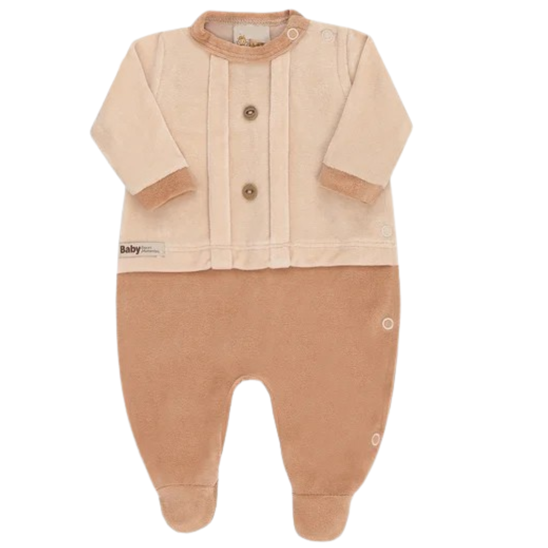 Confeccionado em plush, proporciona um toque macio e quentinho, ideal para manter o bebê protegido e confortável. O modelo conta com abertura lateral total com botões de pressão, facilitando o vestir e as trocas com mais agilidade e cuidado.