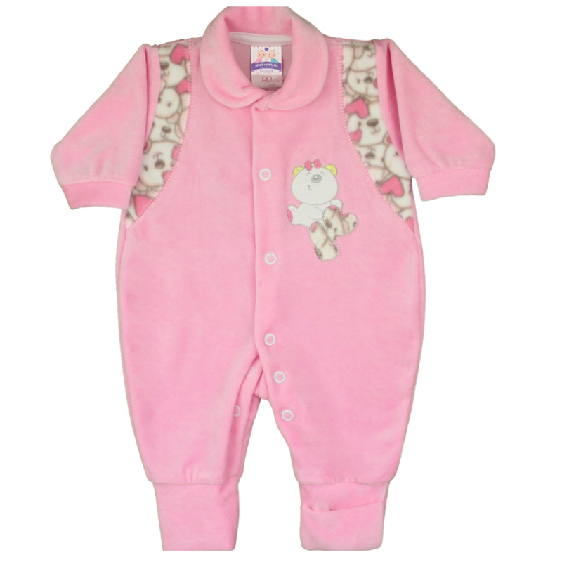 O nosso macacão em plush macio é uma peça versátil e confortável para deixar sua Apressadinha linda, estilosa e confortável.