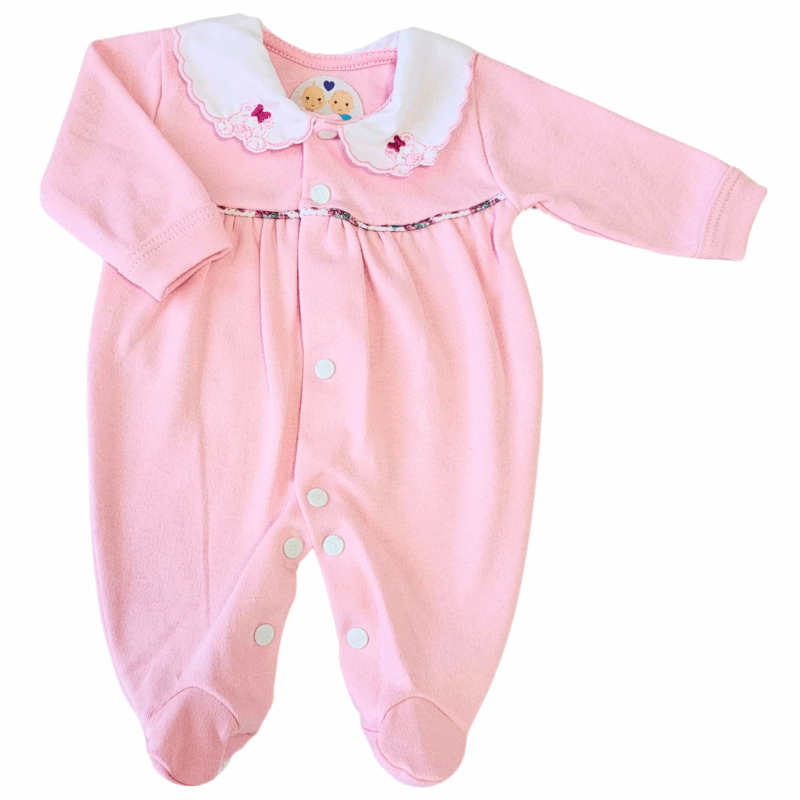 O macacão tem botões frontais e entre as perninhas, facilitando a hora de trocar a fraldinha e pé reversível, permitindo que o bebê use a roupinha por mais tempo.