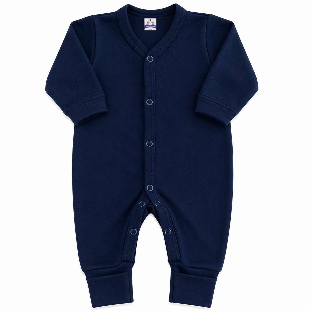 O macacão vem com abertura frontal, fechamento por botão de pressão e pé reversível, permitindo que os apressadinhos usem por mais tempo.