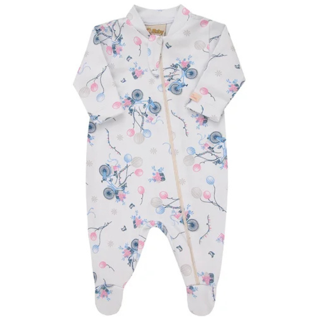 O zíper com abertura frontal total traz muito mais praticidade na hora de vestir e trocar, sem precisar movimentar demais a bebê.