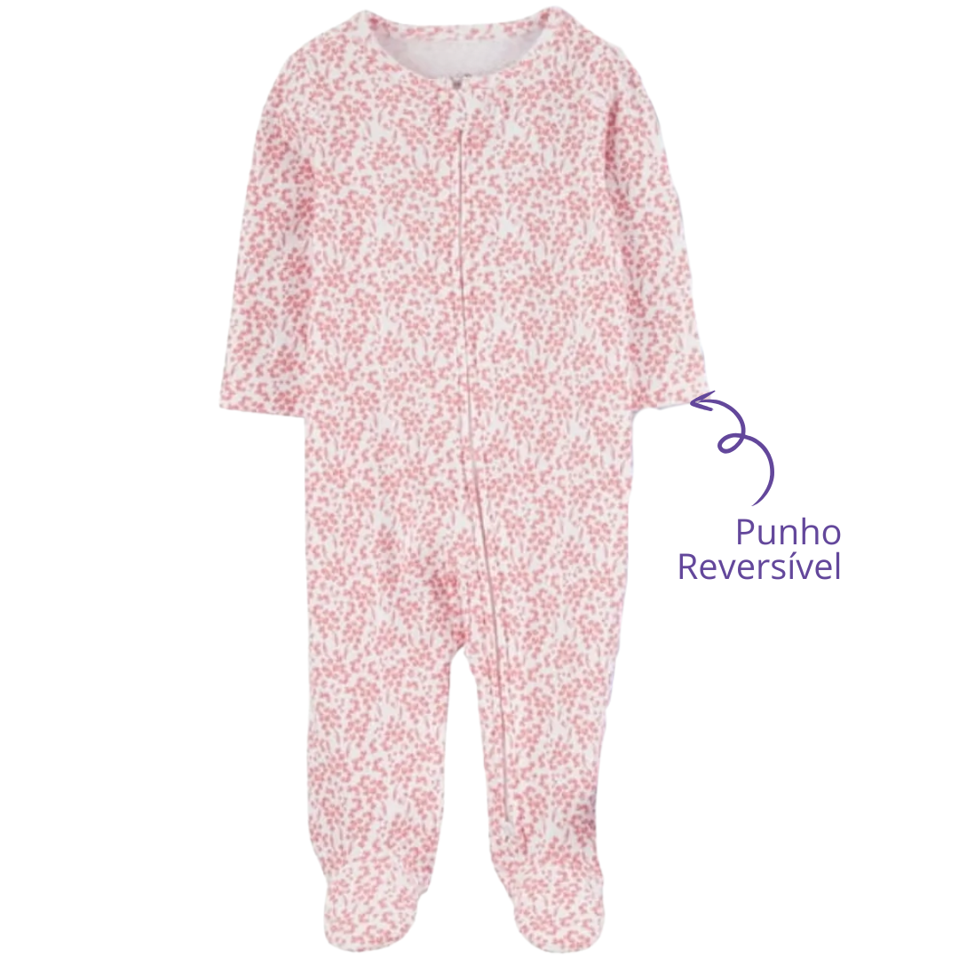 Macacão Prematuro Suedine Zíper Flor Rosa