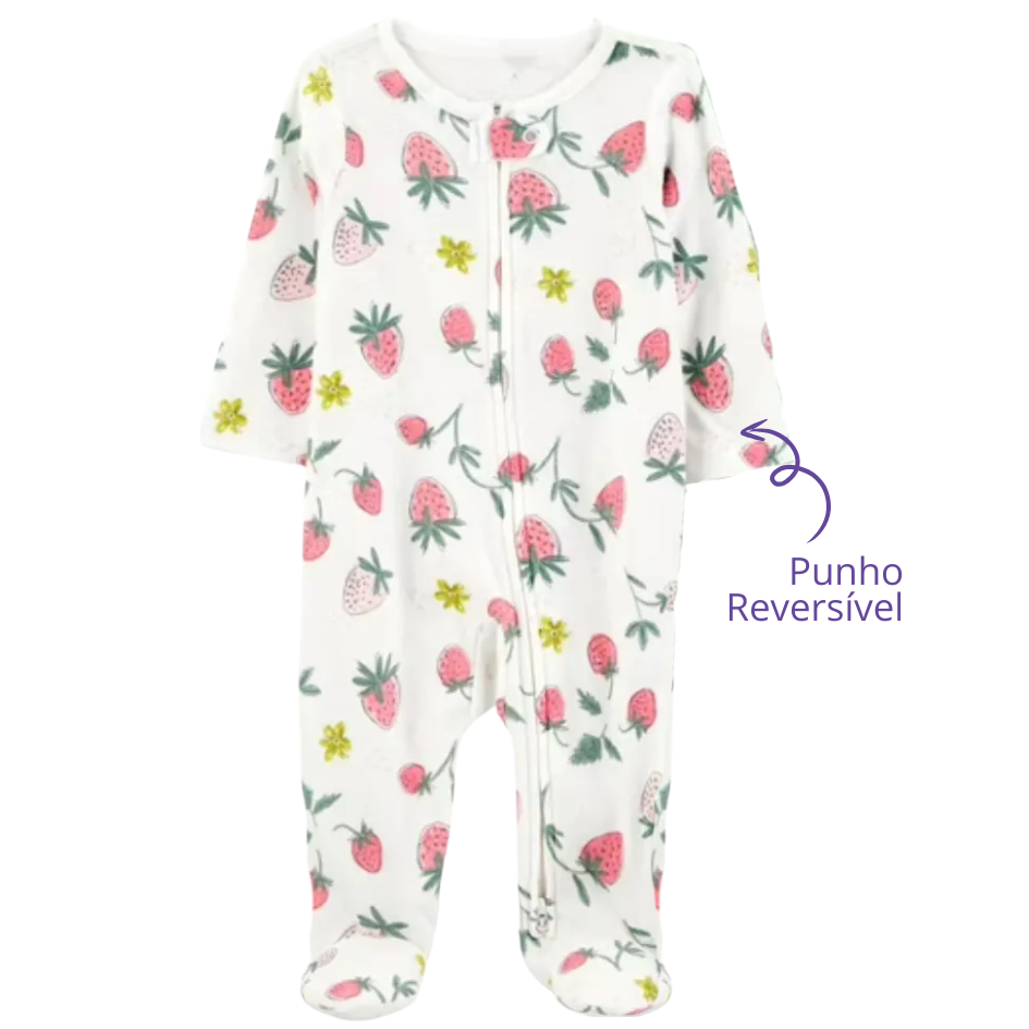 Macacão Prematuro Suedine Zíper Moranguinho Doce