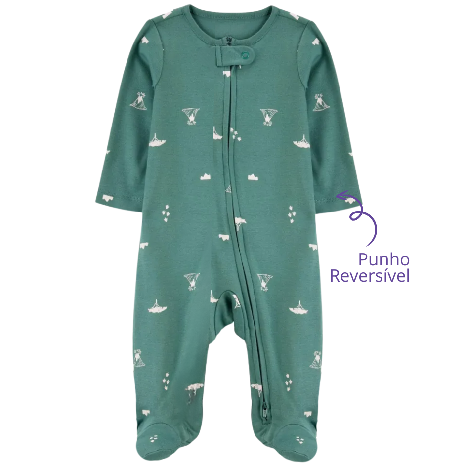 Macacão Prematuro Suedine Zíper Vulcão na Floresta